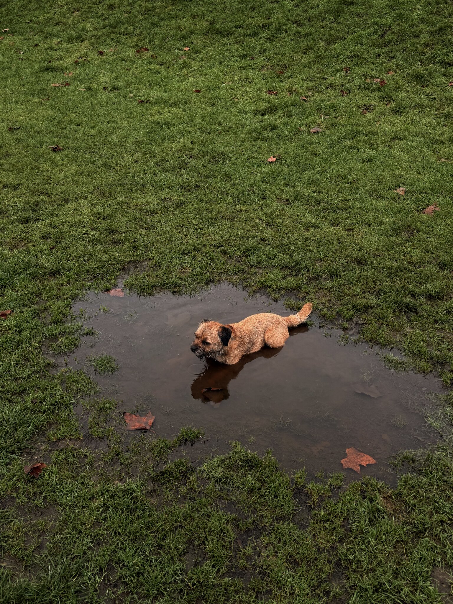 Maude cooling off in a puddle in the park this morning.